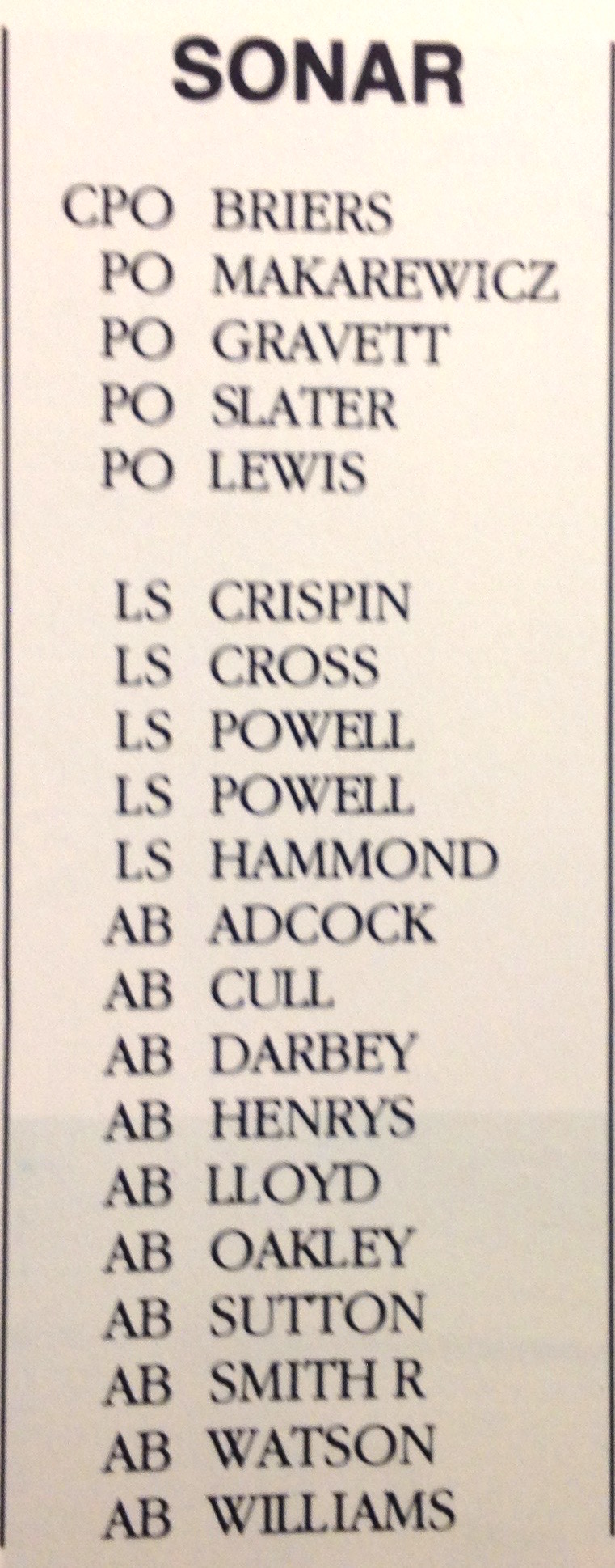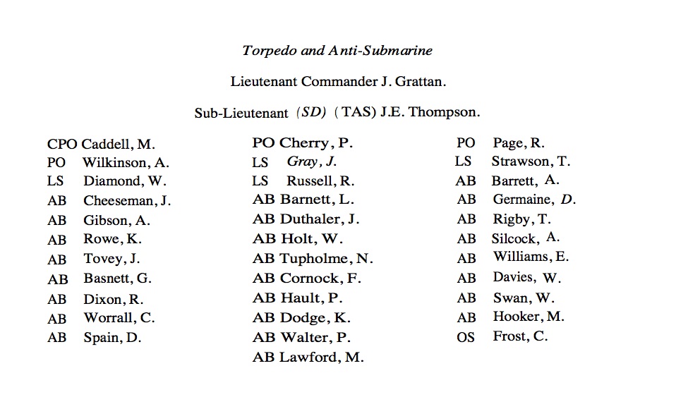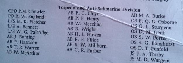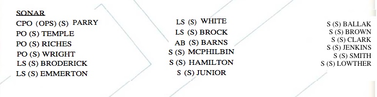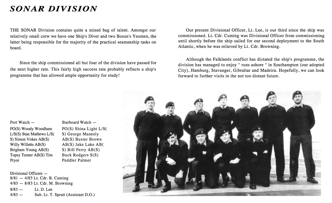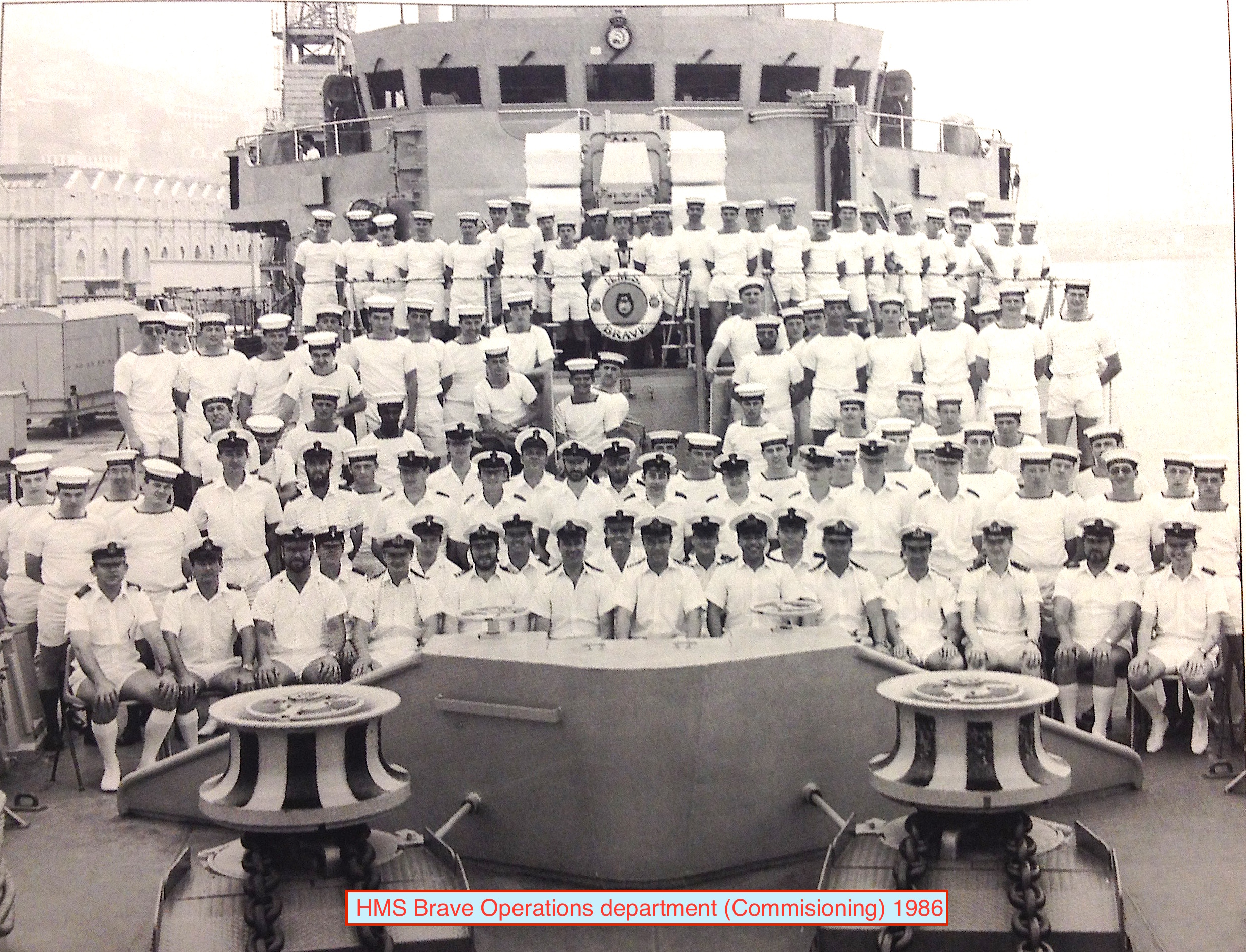 | HMS BRAVE | Sonar team from Commissioning book 1986 | ![]() |